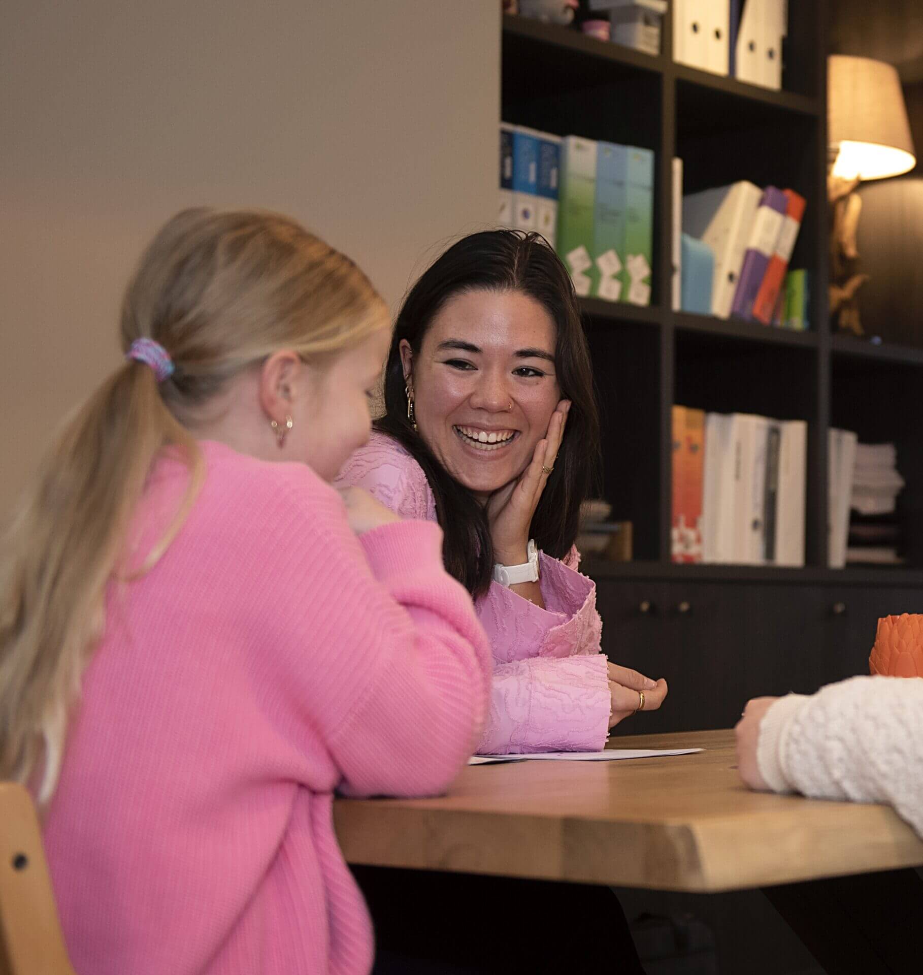 Enthousiasme naar het kind toe, voelt het kind goed aan.